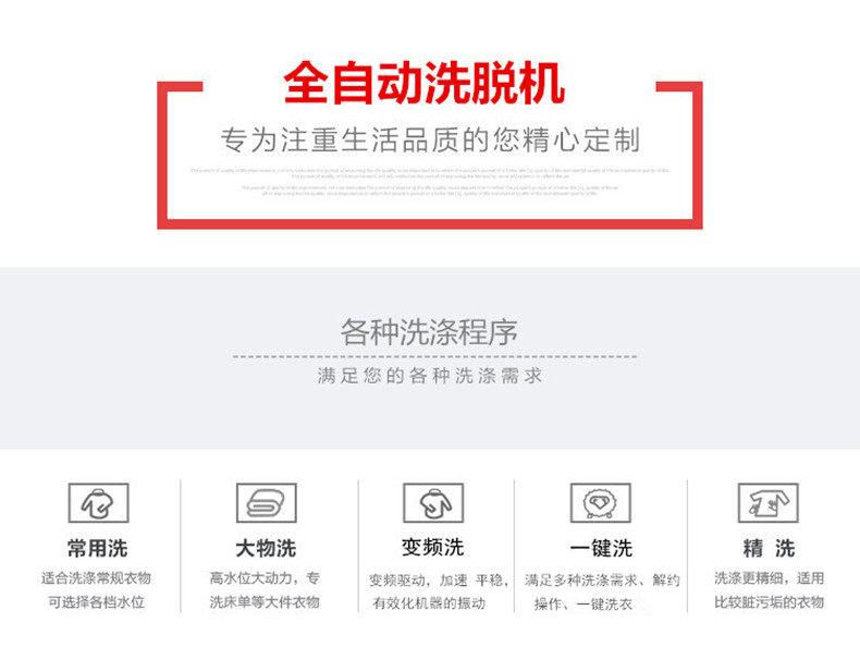 - 操作简单,电脑全自动控制系统,中文屏幕液晶显示,洗涤过程一目了然,洗涤程序随意选定。